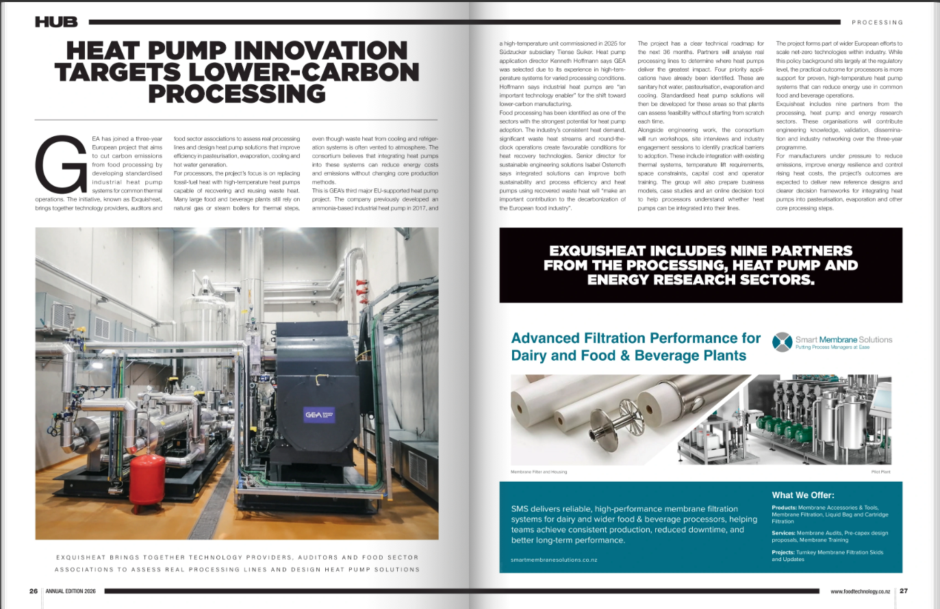 In the Food Technology News magazine, the bottom half of the right hand page displays the advertisement designed by Emma Lorraine Design. This design was used for both digital and printed media with the online magazine also being published in print.